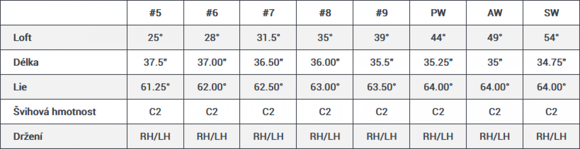 - bližší specifikace k železům najdete v tabulce v galerii fotek