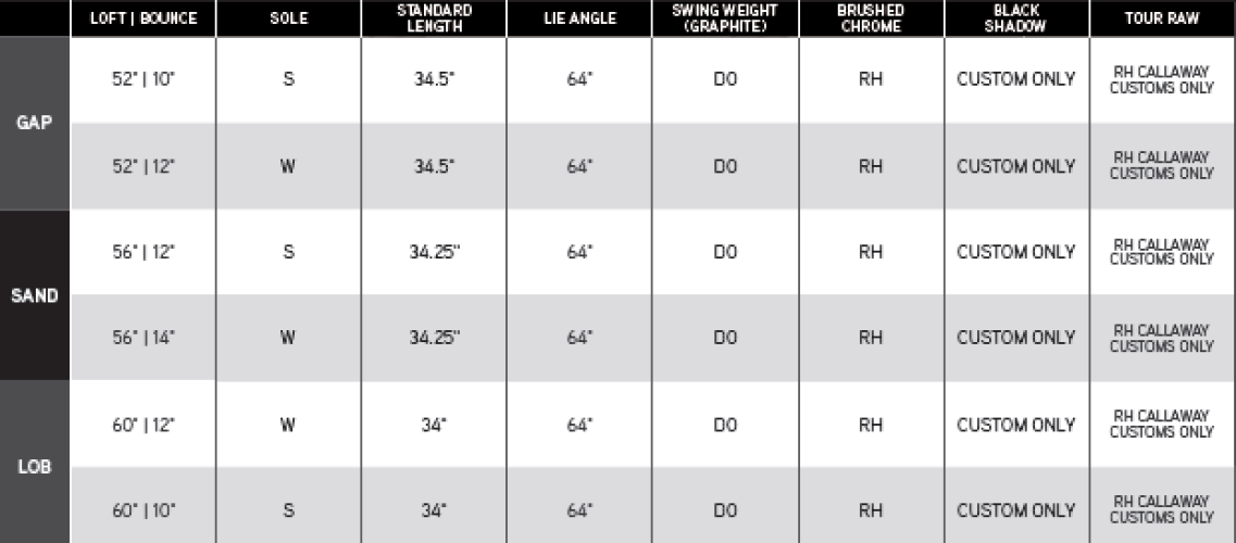 Wedge Opus jsou nejvíce testované a ověřené tvary v historii Callaway. Precizní tvarování s vyšší špičkou, oblými hranami a plynulým přechodem na hosel.