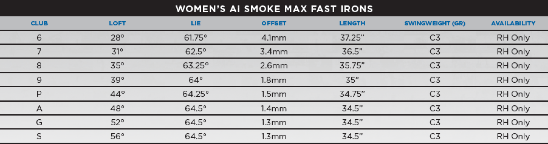Callaway Paradym Ai Smoke MAX Fast set dámských želez 6 - PW, AW, SW, pravé, grafit