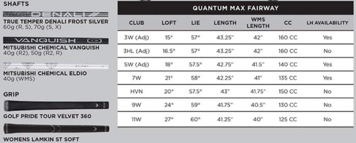 Fairwayové dřevo Callaway Quantum Max je navrženo pro snadné odpaly, vysoký launch a maximální toleranci. Díky moderním technologiím pomáhá hráčům dosahovat konzistentních výsledků a větší jistoty při každém švihu – ať už hraješ z fairwaye, roughu nebo z týčka.