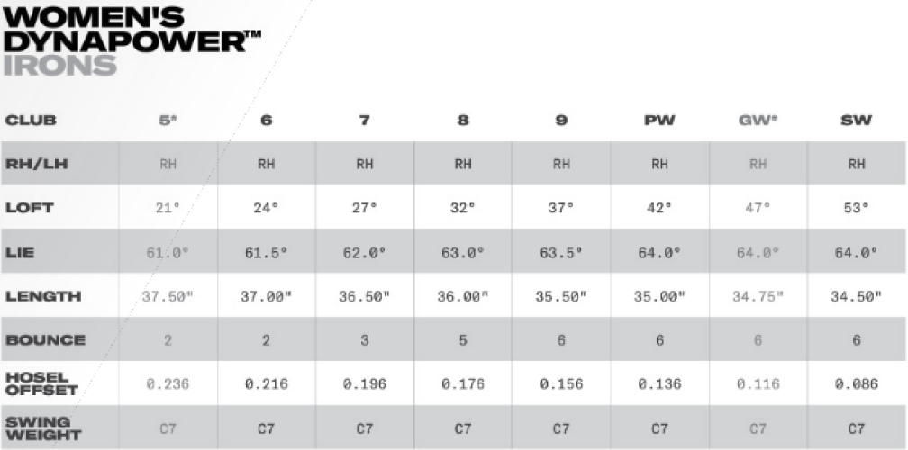 Železa Dynapower, využívají technologii Dynapower AI, která nabízí elegantní design, proměnlivou tloušťku čela a poskytují maximální rychlost míče po celé ploše hlavy hole, se zaměřením na střed a špičku, kde je zasaženo až 85 % úderů u hráčů s HCP 10+.